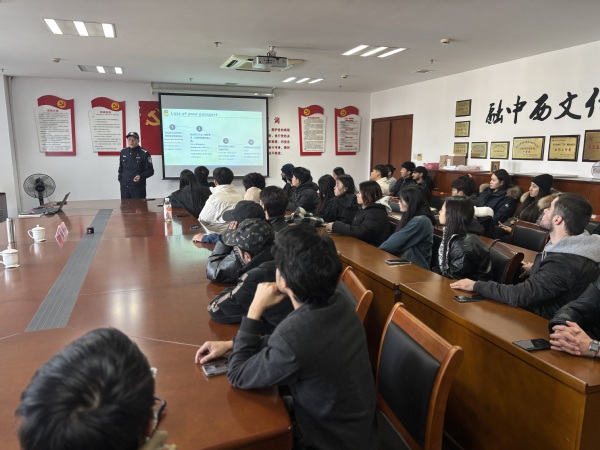为进一步加强外籍师生法制教育,提升外籍师生对我国涉外法律法规及相关政策的理解与认知,促进文化交流与融合,12月13日,人文学院协同校安全保卫部邀请杭州市钱塘公安分局政治安全保卫大队大队长邵世坤来校为外籍师生开展安全教育宣讲活动。学院党总支书记董平、安全保卫部部长马正义、留学生辅导员以及35名外籍师生参加此次活动。