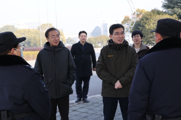 新春佳节即将到来,校党委书记钱天国、校长万健一行于1月22日走访钱塘校区、南浔校区,看望慰问寒假留校一线工作人员,并开展校园安全、后勤保障等工作检查。党委副书记吴小英陪同走访慰问。办公室、工会、安保部、后勤中心、南浔办等部门负责人参加走访。