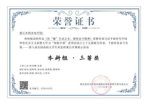 近日,教育部公布了“七十五载薪火传承,千秋伟业奋斗有我——第八届全国高校大学生讲思政课公开课展示活动”获奖作品名单,由米兰官网宣传部、马克思主义学院、校团委和建筑工程学院团委联合指导的作品《饮“疆”生命之水,赓续奋斗精神》荣获全国三等奖。