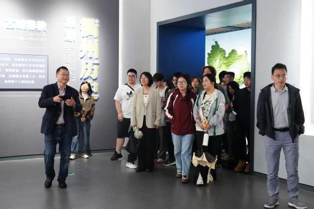 在衢州市城市展览馆,师生通过数字孪生城市模型、沉浸式飞行影院等智慧展项,系统梳理衢州从“千年瀫水”到“拥江时代”的发展脉络,重点研究城市规划中的空间布局优化与智慧运维体系。作为集文化展示与服务市民于一体的地标建筑,其钢结构装配式施工技术、地下空间综合利用方案及海绵城市运维体系引发学生们深度研讨。现场,学生们结合《绿色施工》等课程,围绕BIM技术在水系规划中的应用、多专业协同施工等课题开展案例分析。