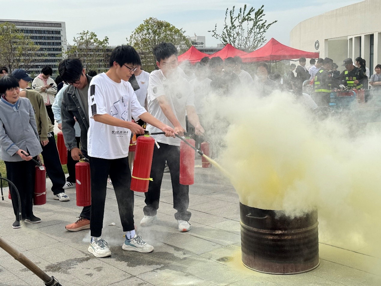 本次系列活动理论结合实践,涵盖安全素养提升、学生宿舍楼火灾疏散演练、灭火器实操培训三大核心环节。活动期间,属地消防专家面向全校各部门安全员、宿管员及校卫队员,系统讲解火灾预防、隐患排查及应急处置等专业知识,剖析典型案例、解读法规;学校在南浔校区听涛、闻潮书院与钱塘校区 6 号学生宿舍楼开展火灾疏散实战模拟,构筑“初期自救—专业支援”的应急防线;消防员现场指导,师生轮番上阵,在实操中掌握灭火器“提、拔、握、压”四字诀。