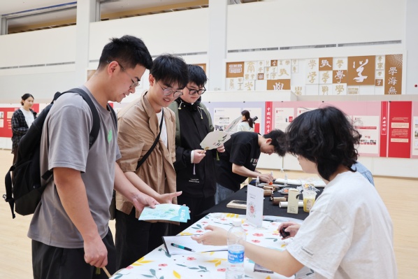 开幕式后,丰富多彩的“书香雅韵・非遗传承” 游园会在图书馆开启。游园会设置“知识启航区”“非遗匠心区”“数字互动区”“特别活动区” 四大主题板块,包含“墨香心语” 读书角、“古韵留痕” 拓印工坊、“飞流阅享” 扫码挑战等特色项目,吸引了众多师生踊跃参与,沉浸式体验传统文化与数字技术交融的阅读氛围。