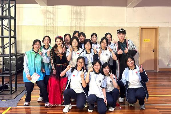 水利学院师生一行参观了菱湖中学民族教育交流展示中心,水利学院少数民族学生代表在开幕式上表演了歌曲《掀起你的盖头来》。活动中,两校学生还进行了互动。