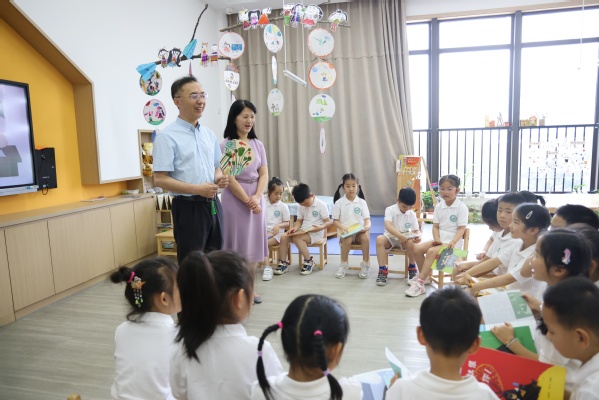 万健一行先后走访了园内的儿童地名博物馆、儿童浔丝博物馆、幼儿教室等地,观看了孩子们的手工作品展。万健对幼儿园的办园理念、童趣环境给予了充分肯定。他表示,学校将一如既往支持幼儿园建设,做好保障工作,为全体师生创设一个温馨无忧的环境,为孩子们的健康成长助力。