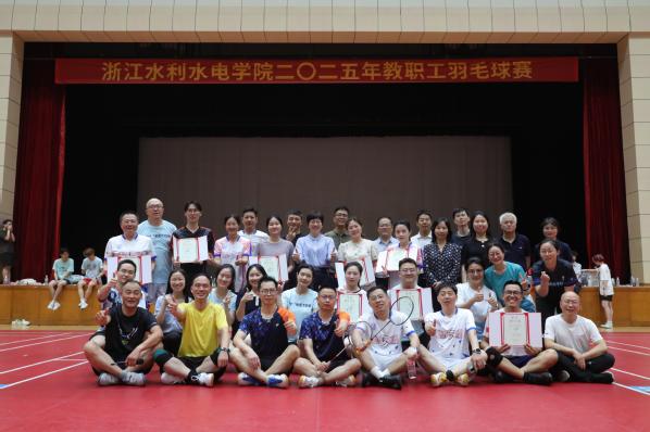 6月4日,学校2025年教职工羽毛球团体赛在钱塘校区体育馆圆满落幕。本次赛事共有11支代表队、100余名队员展开激烈角逐。机关工会联队、水利分工会、建工分工会最终夺得团体前三名。