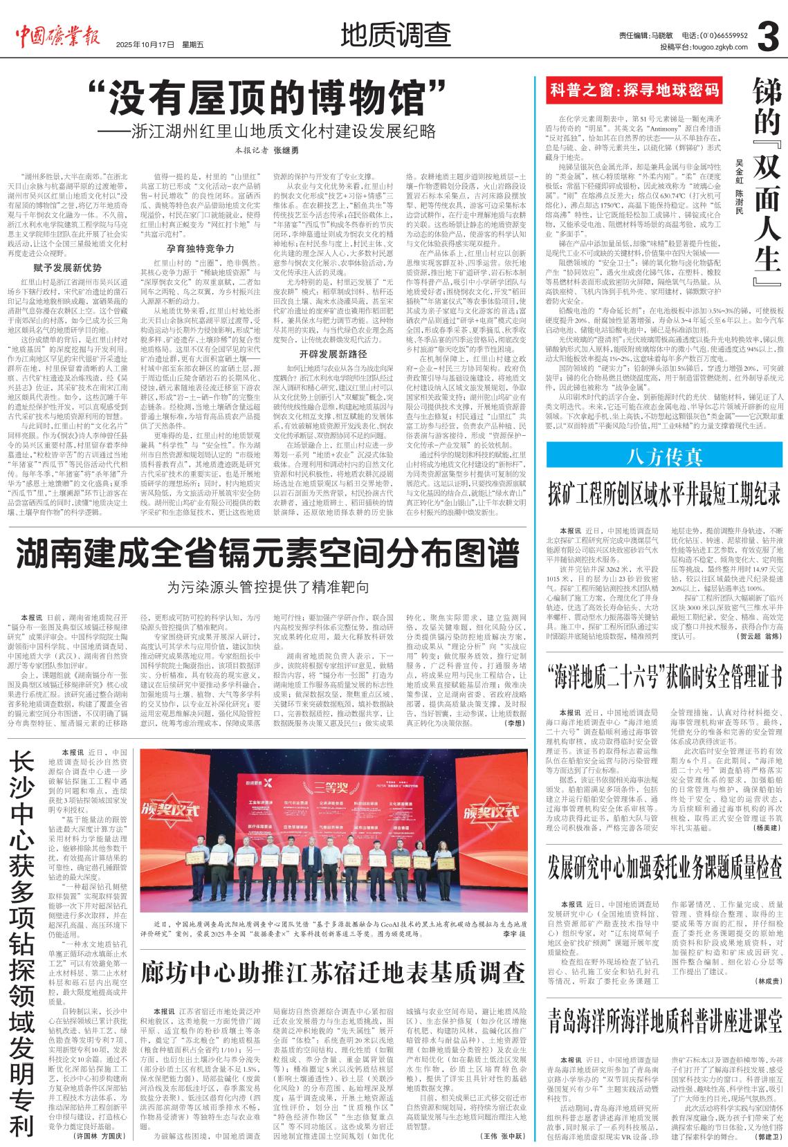 【中国矿业报】“没有屋顶的博物馆” ——浙江湖州红里山地质文化村建设发展纪略