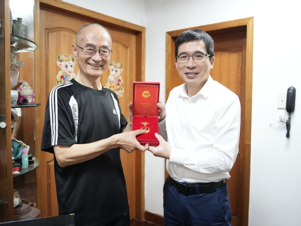 钱天国先后来到黄世钧、滕中健、王仿荀等老领导、老党员家中看望慰问。其间,钱天国与老领导、老党员亲切交谈,代表学校党委为他们送上亲切的问候和党组织的关怀,为“光荣在党50年”老党员颁发纪念章,祝福大家健康快乐。
