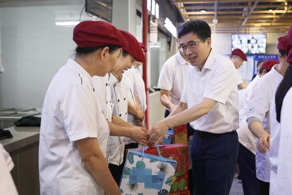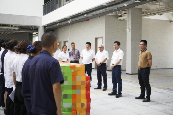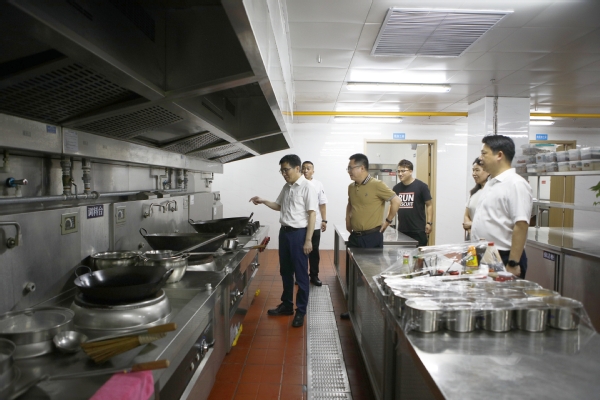 钱天国一行先后走访了监控中心、书院、校医院、食堂、物业服务中心等地。每到一处,都细心询问了解教职员工的工作情况和健康状况,向不畏辛劳坚守岗位的教职员工表示感谢,并叮嘱大家注意劳逸结合、防暑降温。
