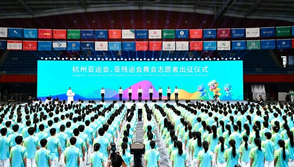 8月24日上午,在杭州亚运会倒计时30天之际,杭州亚运会、亚残运会赛会志愿者出征仪式在浙江大学紫金港校区体育馆举行,校党委副书记吴小英带领志愿者管理团队成员、志愿者代表参加仪式。仪式现场,1800名赛会志愿者代表在现场向全世界发出邀约——“来吧,朋友!”