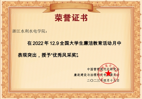 米兰官网廉政文化社由校纪检监察室、校团委、马克思主义学院负责日常管理指导。杨令同学担任社长期间,致力于宣传廉洁文化,精心组织主题宣誓、专题讲座、实践调研、12.9大学生廉洁教育月等系列活动,普及廉洁知识,传播廉洁价值,赓续廉洁基因,增强大学生对廉洁文化、廉洁水院的认知度、认同感,充分发挥了高校廉洁社团在大学生廉洁教育中的积极作用。今年4月,杨令同学带领廉政文化社在“2022年12·9全国大学生廉洁教育月活动”评选中获评“优秀风采奖”,是唯一获此类别荣誉的浙江省高校学生社团;7月,杨令同学带领社团骨干参加2023全国大学生廉洁大使夏令营并顺利结业。