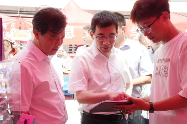 上午,党委书记钱天国,校长陈光亭,南浔区委书记温建飞等一行先后走访图书馆北广场、听涛书院、思源楼新生报到综合服务点等迎新工作现场,了解新生报到实时大数据,检查指导迎新工作。党委副书记吴小英,南浔区委副书记、政法委书记杨国志,学校和南浔区相关部门负责人陪同。