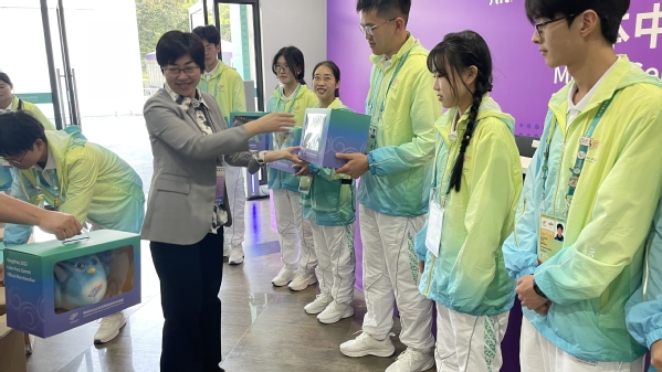 吴小英一行先后走访了礼宾接待、媒体运行、竞赛综合、体育与颁奖仪式等业务领域,了解米兰官网亚运会、亚残运会志愿服务总体情况,关切聆听了亚残运会志愿服务期间的各项安排,与“小青荷”们进行亲切交流,畅聊在服务过程中的难忘点滴。吴小英表示,连续18天的亚运会志愿服务后,“小青荷”依旧坚持以饱满的工作热情、昂扬的精神状态、温暖的专业服务投入到亚残运会志愿服务当中,继续在各自服务岗位上尽职尽责、发光发热,很好地展现了水分子的国际视野、家国情怀和实践能力,为大家的优秀表现感到自豪骄傲,勉励大家继续立足岗位,用温暖温馨与专业规范服务赛事、展现担当。