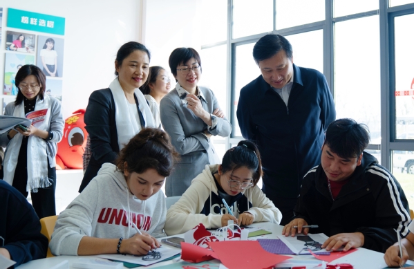 会后,调研组一行实地考察了阿木工作室,详细了解铸牢中华民族共同体意识实践活动开展情况,并与各民族学生代表进行访谈交流。