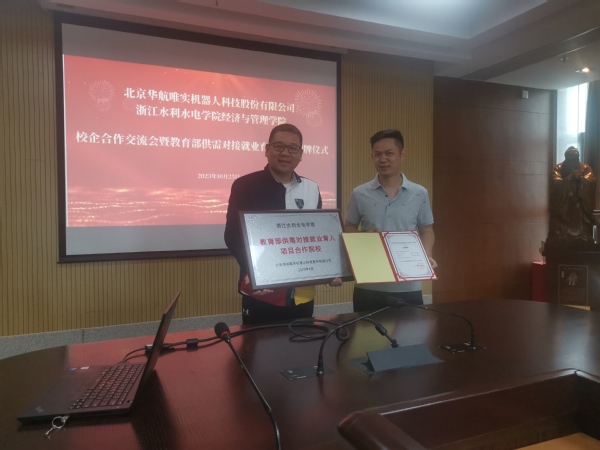 10月25日下午,经管学院与北京华航唯实机器人科技股份有限公司校企合作交流会暨教育部供需对接就业育人项目授牌仪式在米兰官网举行。北京华航唯实机器人科技股份有限公司院校合作总监钟海龙、供需对接就业育人项目负责人张微、人才服务经理王笛笛,经管学院副院长蒋剑勇、物流工程教研室主任戴晋及部分物流工程专业教师出席了会议。