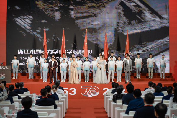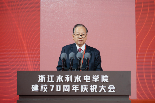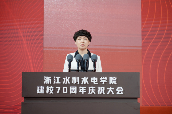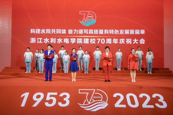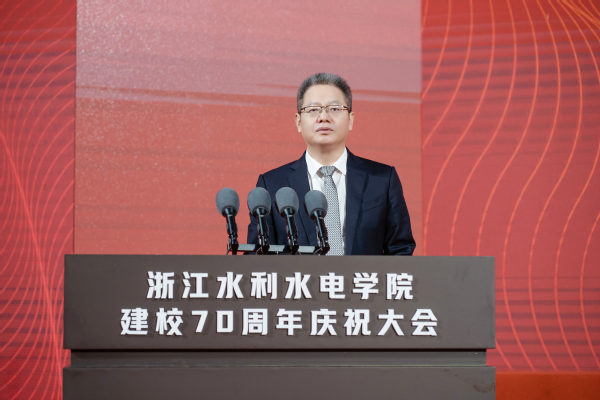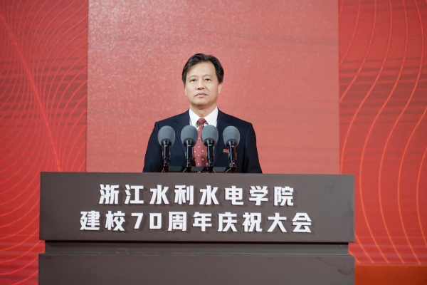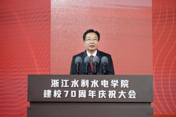钱天国在主持时指出,多年来,在省委、省政府的坚强领导和省水利厅、教育厅等上级部门的领导指导和关心支持下,学校深入贯彻“贺信精神”,牢记习近平总书记殷殷嘱托,坚持一张蓝图绘到底,办学规模、办学层次、办学水平不断提升,学校事业“高质量、有特色”发展取得了阶段性成果。他表示,学校将以建校70周年为新起点,深入学习贯彻习近平新时代中国特色社会主义思想,坚持以“贺信精神”为根本遵循,坚守水利水电办学初心,锚定高水平应用型大学建设目标,深入实施人才强校战略,凝聚水院共同体强大合力,落实立德树人根本任务,持续推动学校事业高质量有特色发展,为深入实施“八八战略”,建设高等教育强省,奋力谱写中国式现代化浙江新篇章展现水院担当、作出水院贡献。