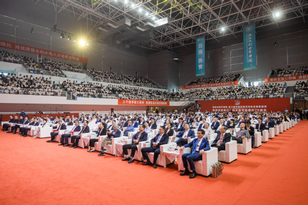 水利部人事司副司长王静,中国工程院院士、长江设计集团首席科学家钮新强,省水利厅党组书记、厅长李锐,省委教育工委委员、省教育厅副厅长陈峰,湖州市人民政府副市长夏坚定,省水利厅党组副书记、副厅长范波芹,省人力资源和社会保障厅党组成员、副厅长葛平安,省社科联副主席陈先春;中国水利教育协会会长张明俊,水利部交通运输部国家能源局南京水利科学研究院党委书记段虹,国际小水电中心党委书记、主任徐锦才,中国水利水电出版传媒集团有限公司总经理营幼峰,水利部产品质量标准研究所党委书记、所长方勇;湖州市南浔区委书记温建飞、区长程佳,杭州市钱塘区副区长胡国伟;华北水利水电大学、南昌工程学院、徐州工程学院、新疆理工学院、中国美术学院、浙江工业大学、浙江师范大学、杭州电子科技大学、西湖大学、衢州学院、温州理工学院等59所兄弟高校的领导出席庆祝大会。米兰milan官方网站党委书记钱天国主持大会。