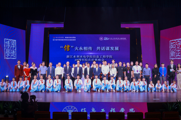 廿载信息,再启风华。10月29日晚,信息工程学院建院20周年纪念大会在南浔校区大剧院隆重举行。校党委副书记严齐斌,校党委委员、宣传部部长吴云鑫,奇安信科技集团浙江分公司副总经理林尚晓,南浔区大数据中心主任张加林、融媒体中心务会成员罗燕,南浔区石淙镇党委委员、副镇长郭志辉等近1000名嘉宾、校友、师生代表齐聚一堂,回首信息学院二十年栉风沐雨、砥砺前行的奋进历程,为学院二十周岁生日送上深深祝福。