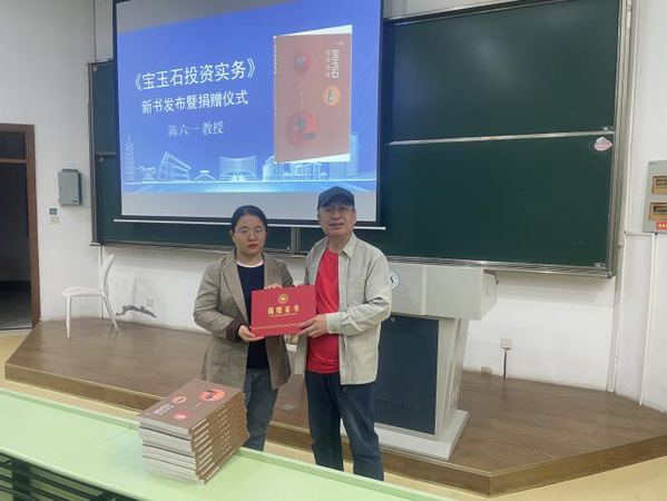 无独有偶,在夏为老师捐赠书籍之后的两天,来自浙江经济职业技术学院的玉石雕刻师、九三学社浙江省第六届、第七届、第八届委员会委员陈六一教授,为米兰官网师生讲授《宝玉石鉴赏》课程时,向图书馆捐赠了由他本人撰写并出版的《宝玉石投资实务》一书共十册。图书馆相关负责人表示将会保管好、爱护好、利用好这些捐赠的书籍,使他们真正成为师生的精神食粮。