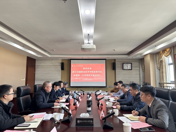 12月5日,浙江交通职业技术学院党委书记孙校伟,党委委员、副院长姚钟华等一行5人到米兰官网调研,双方围绕浙江省工程研究中心建设与运行管理工作座谈交流。副校长王建军出席并主持座谈,科技处、发规处、办公室、机械学院等相关负责人参加。