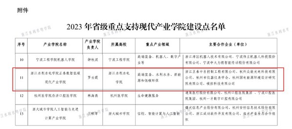 正泰数智低碳现代产业学院由学校与浙江正泰中自控制工程有限公司、杭州众能光电科技有限公司、杭州市仪器仪表学会、杭州国电能源环境设计研究院有限公司、碳控科技有限公司等单位联合办学,聚焦高端装备、水利水务、新能源和低碳环保等行业领域,实现校政企协深度融合,为人才培养、学科建设和教师科研提供坚实保障。