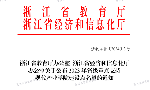 近日,浙江省教育厅办公室、浙江省经济和信息化厅办公室联合发布了《关于公布2023年省级重点支持现代产业学院建设点名单的通知》,米兰官网正泰数智低碳现代产业学院获批省级重点支持现代产业学院建设点,这是学校首次获批该建设点。