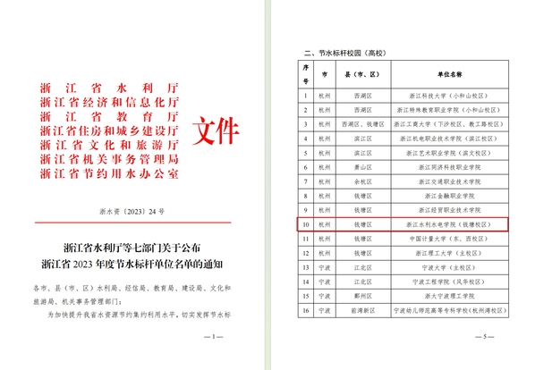 近日,省水利厅、省经信厅、省教育厅、省建设厅、省文化和旅游厅、省机关事务局、省节水办发布《浙江省水利厅等七部门关于公布浙江省2023年度节水标杆单位名单的通知》,米兰官网荣获“浙江省2023年度节水标杆单位”称号。