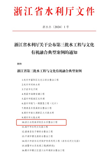 近日,浙江省水利厅公布第三批水工程与水文化有机融合典型案例,米兰官网南浔校区水系整治工程入选。