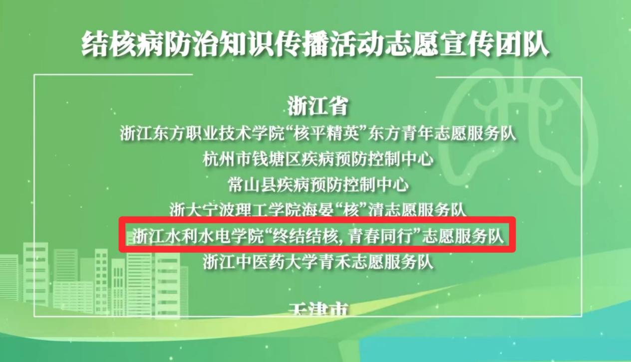 机械学院“终结结核,青春同行”志愿服务队自2014年创办以来,团队在校院两级党委的关怀下,在校院两级团委、总务处卫生所的指导和校青协、校红十字学生分会的支持下,以3·24“世界防治结核病日”为起点,围绕“5+x”项目内容扎实开展“五进工程”,每年有计划地开展结核病防治宣传工作,将育人融入宣传实践中。2022年,学校获评成为首批浙江省“无结核校园”试点大学之一,团队成员代表全省获批高校接受授旗并发言;2023年5月,团队成功入选2023年全国大学生“终结结核,志愿有我”志愿宣讲团,多位同学获得团中央和中国青年志愿协会肯定;2023年7月,团队获暑期社会实践活动校“十佳团队”和“优秀团队”,多位成员获得“先进个人”称号;2023年11月,团队在2023年浙江省百千万志愿者结核病防治知识传播活动提升行动部署会暨“无结核校园”志愿活动项目总结会并获汇报总结优秀组织奖二等奖。截至目前,团队与浙江省疾控中心、湖州市疾控中心、南浔区疾控中心、钱塘区疾控中心、南浔区人民医院、南浔区中医院等多家单位合作,共同开展线上线下的结核病防治宣传工作。团队志愿服务宣讲已走过九个年头,九年间累计吸收万余人参与,举办线下宣传活动二十余次,线上发布推文百余篇,分发宣传手册20000余份。团队事迹被浙江省疾控中心官媒、湖州新闻联播、健康南浔、南太湖号、学校官网等媒体报道,有力推动了防治结核病知识在群众中的普及。