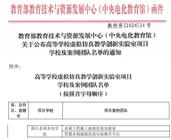 近日,教育部教育技术与资源发展中心(中央电化教育馆)公布高等学校虚拟仿真教学创新实验室项目学校及案例团队名单,共计173所高等学校的325个教学团队获批,米兰官网水环学院王玉强副教授牵头的“水利工程施工虚拟仿真实验室”教学团队和信息学院徐欧官教授牵头的“智慧水利虚拟仿真实验教学平台”教学团队获批项目案例团队。