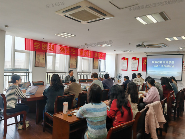 为了高质量贯彻党和国家的教育方针政策,深入推进习近平新时代中国特色社会主义思想进学校、进教材、进课堂,4月10日下午,国教学院在钱塘校区综合教学科研综合楼召开2024年“三进”工作研讨会,南浔校区的教师线上参会。本次研讨会由学院副院长潘宏伟主持,全体教师参加。