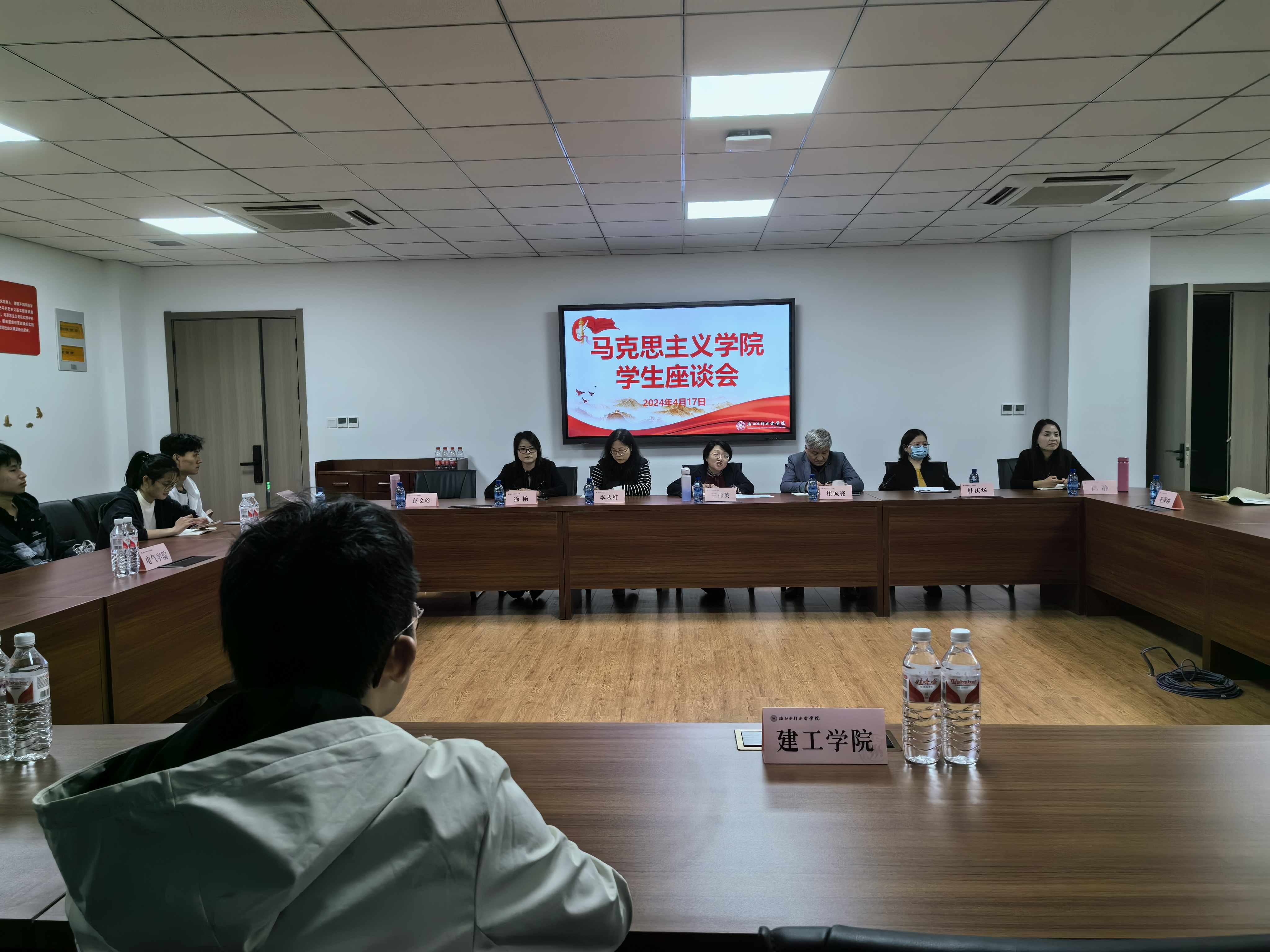 近日,马克思主义学院在南浔校区精弘楼召开学生座谈会。座谈会旨在深入了解学生对思政课程的反馈,有针对性地改进课堂教学,增强学生对思政课的兴趣和满意度。座谈会由马克思主义学院院长王伟英主持,各教研室主任及来自二级学院的学生代表参加。