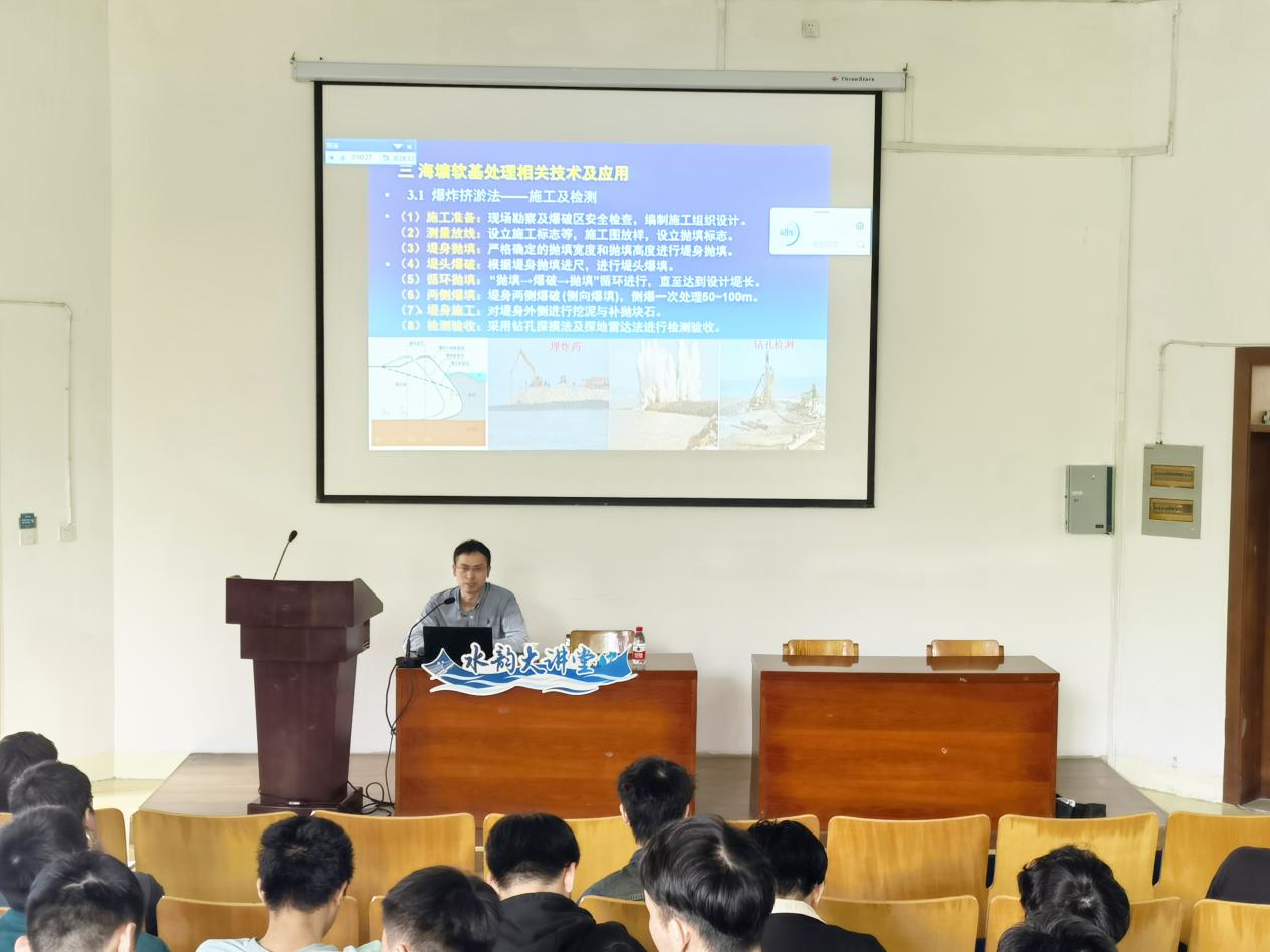 4月26日上午,浙江省水利水电勘测设计院有限责任公司工程设计业务事业部项目经理黄朝煊教授受邀在钱塘校区实验南楼102报告厅为学校师生作《浙江省海塘工程软基加固处理技术应用》的讲座。