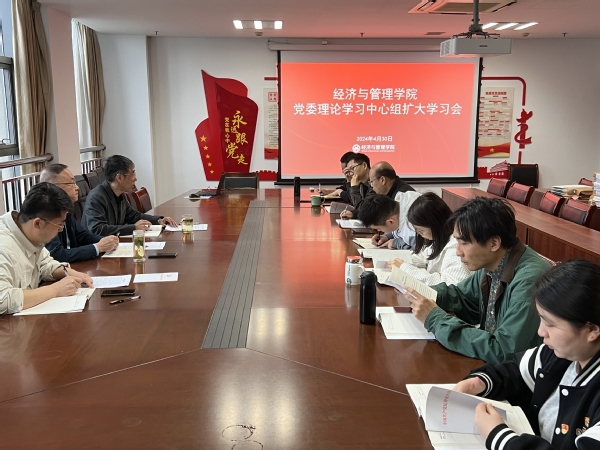 4月30日下午,经管学院党委召开党委理论学习中心组(扩大)学习会,贯彻落实校党委关于党纪学习教育集中学习的要求。学院院长赵志江,学院党委副书记、纪委书记傅琪分别领学并作重点研讨交流发言。学院党委书记严晓焰主持会议并做总结讲话。