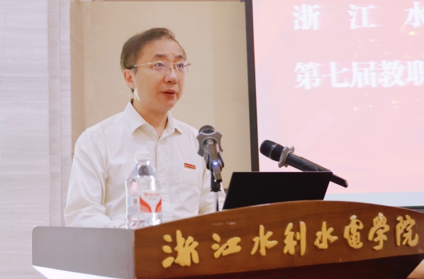 钱天国指出,过去一年,在“贺信精神”指引下,在省委、省政府坚强领导和省委教育工委、省水利厅党组领导指导下,全校上下以超乎寻常的努力,推动学校事业高质量有特色发展取得新的阶段性成果。今年是贯彻落实学校第二次党代会精神、全面建设高水平应用型大学的开局起步之年,新征程、新目标、新任务更加需要全体水院人同心同德、群策群力。一要统一思想聚共识,勇担发展新使命。加强党的领导,坚定正确政治方向,坚持和完善教代会制度,通过教代会把党代会形成的共识转化为全体教职工的集体意志,把党代会确定的新阶段贯彻“贺信精神”的路线图转化为年度工作施工图,坚定不移走高质量有特色发展道路,坚决扛起全面建设高水平应用型大学的历史使命。二要对表对标抓推进,跑出开局好成绩。各二级学院、各部门要对照年度目标任务,倒排时序、挂图作战,全力推进各项重点工作。尤其要平稳有序推进新一轮人事制度改革,打好本科教育教学审核评估“迎评促建”这一“申硕”前哨战,稳步开展双校区办学模式调整优化,做好南浔校区部分学生搬迁等工作。三要敢于担当善作为,人人争当主人翁。希望全体教职工以强烈的主人翁意识,自觉融入学校发展大局,争当高水平应用型大学建设的参与者、实践者、推动者;以滴水穿石、百折不挠的韧劲和“踏石留印、抓铁有痕”的作风,做一件成一件,积小胜为大胜;牢固树立水院共同体意识,自觉服从大局、坚决维护大局,相互支持、相互补台,共同为高水平应用型大学建设添砖加瓦、增光添彩。