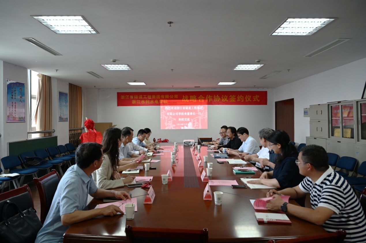 5月23日下午,浙江省隧道工程集团有限公司党委书记、董事长、总经理李桂来,党委副书记游根华,副总经理刘刚等一行来校参加产学研合作基地签约揭牌仪式。学校副校长沈自力、社会合作处处长何志祥,测市学院党总支书记沈苾文、副院长李颖以及道桥专业相关老师出席签约仪式并座谈交流。