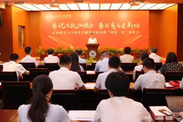 钱天国指出,今天是党的生日,让我们在缅怀历史中牢记使命担当,在展望未来中激发奋进力量,坚持以习近平新时代中国特色社会主义思想为指导、以“贺信精神”为根本遵循,以高质量党建引领学校事业高质量有特色发展,为我省建设勤廉并重的新时代党建高地做出水院贡献。他强调,当前学校事业发展站在了新的起点上,实现学校第二次党代会提出的奋斗目标,需要各基层党组织和全体共产党员发挥示范引领和先锋模范作用,勇于担当、冲锋在前。一是基层党组织要打造成为立德树人的红色堡垒。始终坚持大抓基层鲜明导向,围绕立德树人根本任务,深入实施“红色根脉强基工程”,聚焦制度建设打造规范型基层党组织,聚焦“四个融合”打造引领型基层党组织,聚焦争先创优打造示范型基层党组织,充分发挥基层党组织战斗堡垒作用,把党的政治优势、组织优势、纪律优势和群众工作优势,转化为全面建设高水平应用型大学的发展优势。二是广大党员要努力成为推动学校事业高质量有特色发展的排头兵。选优配强基层党组织书记,加强示范引领,发挥头雁效应。加强教职工党员队伍建设,发挥教职工党员推动高质量有特色发展的标兵作用,激发广大教职工矢志一流、干事创业的积极性和主动性。加强学生党员发展和培养工作,发挥学生党员队伍示范作用,带动全体水院学子在新时代新征程上挺膺担当、报效祖国。三是党务干部要努力当好学校党建工作的组织者、推动者、实践者。政治素质要过硬,广大党务工作者要把讲政治作为一切工作的首要要求,做到政治上绝对可靠、对党绝对忠诚,确保党建工作各项任务不折不扣落实到位,自觉服从和服务高质量有特色发展大局。业务能力要过硬,自觉用党的创新理论指导党务工作,勤学习、善思考、重实践,努力成为党务工作的行家里手。纪律作风要过硬,加强党纪学习教育,把纪律建设和作风建设摆在突出位置,自觉校准价值坐标,筑牢思想防线,用实际行动树立党务工作者清正廉洁的良好形象。