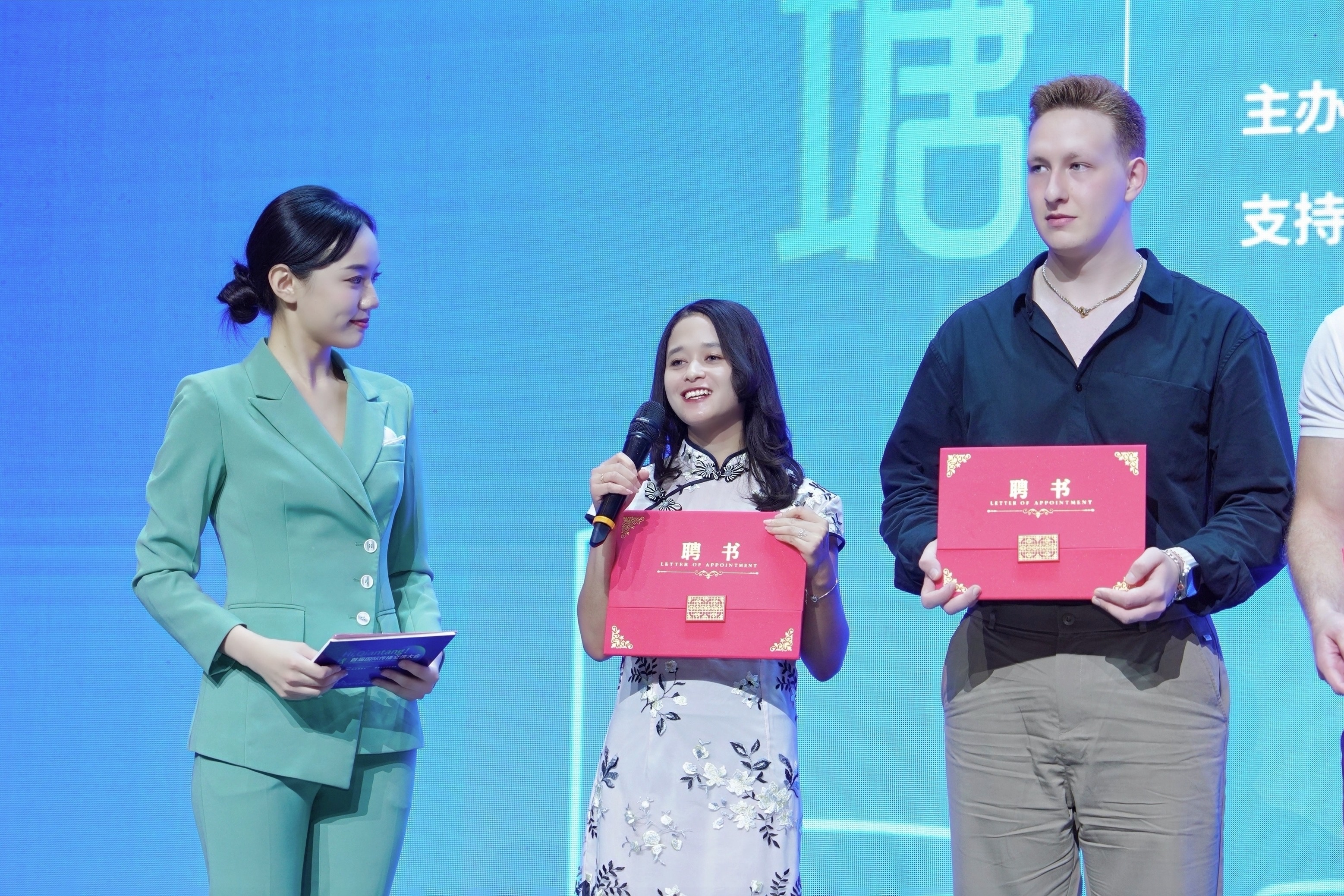 大会上,叶云与其他五名来华留学生接过了聘书,真正成为了首批钱塘海外传播官。叶云在接受采访时表示,作为钱塘区首批海外传播官及钱塘区的留学生,她会尽最大的努力做好钱塘区的宣传工作,让更多的海外人士尤其是海外学子了解钱塘的温暖,希望钱塘区的未来更具包容性、更具国际范!
