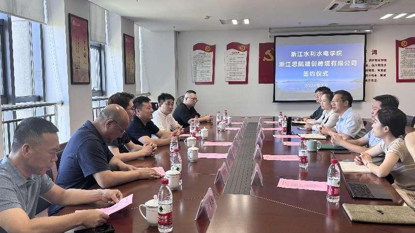 7月5日上午,人文与外国语学院与浙江思陆融创跨境贸易有限公司在钱塘校区教学科研综合楼508会议室举行校企合作项目签约仪式。思陆跨境电商运营总裁潘弘波、思陆流量矩阵运营总裁曹绩宁、思陆出海流量学院院长郑伟、思陆跨境IP运营负责人徐莹以及各区服务商代表一行七人,学院总支书记董平、副院长潘宏伟、商务英语教研室主任成铭、教师代表和辅导员导代表参加签约仪式。潘宏伟主持签约仪式。