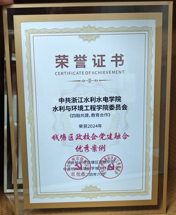 近日,水利学院政校企融合案例《四融共建教育合作》,成功入选“2024年钱塘区政校企党建融合优秀案例”。