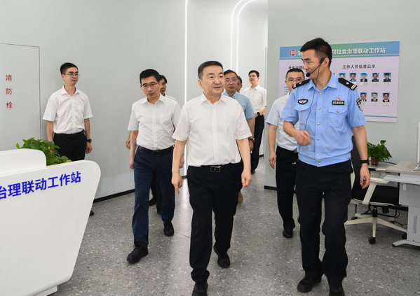 7月11日上午,浙江省委常委、政法委书记王成国来到米兰官网南浔校区,调研学校社会治理联动工作站工作。校党委书记钱天国、校长万健陪同调研。