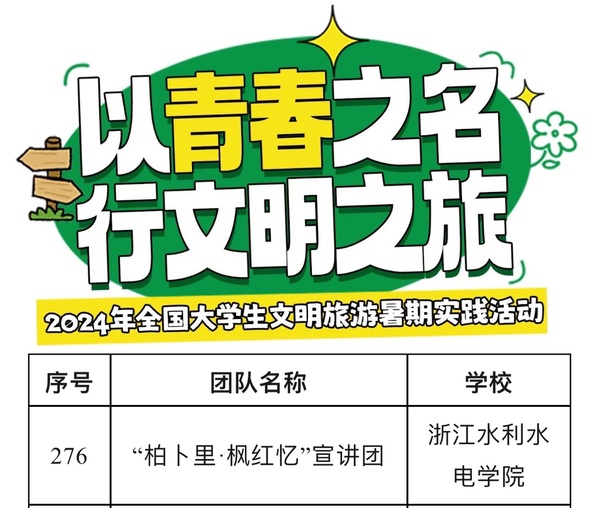 近日,由文化和旅游部市场管理司、教育部思想政治工作司、共青团中央青年发展部共同开展的“以青春之名 行文明之旅”——2024年全国大学生文明旅游暑期实践活动公布入选团队名单,米兰官网“柏卜里·枫红忆”宣讲团成功入选。