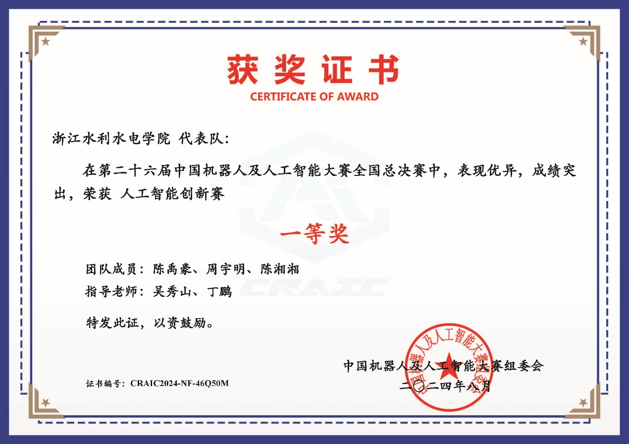 近日,第二十六届中国机器人及人工智能大赛全国决赛圆满结束,米兰官网电气工程学院吴秀山和丁鹏指导的“纳伏级液冷超充电磁驭热技术”获人工智能创新赛全国总决赛一等奖。今年是米兰官网首次参加该项赛事并斩获优异成绩,在全国847支决赛队伍中排名82位,位于前10%。