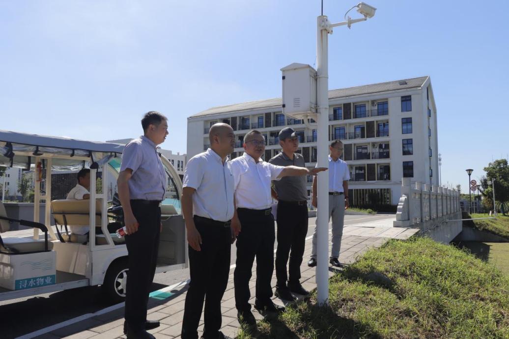 9月13日上午,副校长沈自力带队对南浔校区的防汛抗台工作进行检查,公建处处长傅江烨,安全保卫部部长马正义、后勤服务中心副处长闫成贵、南浔办公室副主任薛磊等相关人员陪同。沈自力一行先后检查了教学楼、行政楼地下车库门口、校园西侧、高压配电房、地面排水井、工训楼排水管等地的防汛抗台隐患,仔细排查了屋顶漏水、屋顶天沟的疏通问题,并前往图书馆检查了排水器械等防台抗洪物资的准备工作。下午,公建处、保卫部、后勤服务中心对钱塘校区的防汛防台情况进行检查。