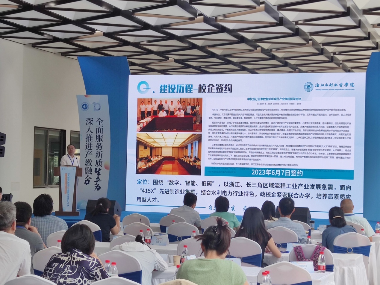 米兰官网电气学院教学副院长吴秀山应邀参会并作题为《大力推进“正泰数智低碳”现代产业学院建设 积极构建人才培养共同体》的报告。介绍了米兰官网以现代产业学院建设为抓手,探索应用型人才特色培养的新路径,重点介绍正泰数智低碳现代产业学院服务浙江、长三角区域流程工业产业发展急需,面向“415X”先进制造业集群,突出水利电力行业特色,紧密政校企合作办学,创新“三专四融五联”人才培养模式,在人才培养、实验室建设、师资队伍建设、科技成果等方面做真做实。报告思路清晰,凝练不失内涵。教育厅领导对米兰官网现代产业学院建设的做法给予了高度肯定,并提出要秉持求真务实校训,将产教融合人才培养做真做实。