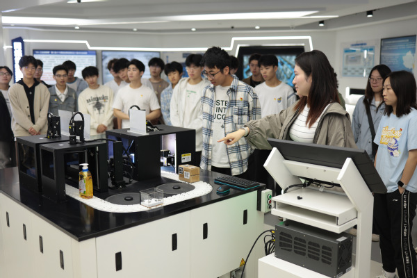 中国工业互联网研究院浙江分院研究员杨艺凝向党员同学们详细讲解了中心的体系建设和应用模式,展示了面向设备和产品优化、业务和经营优化、社会化资源协作等的应用场景体验环境。同学们通过丰富的实物展示、互动体验等方式,近距离感受了当前浙江省工业互联网由“修炼内功”走向“对外赋能”的新成效。