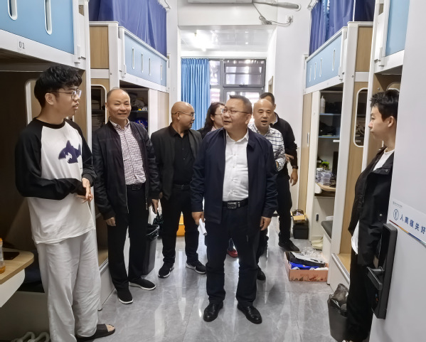 沈自力就书院外立面及楼道廊道设施安全情况作了抽查检查,对各寝室内部设备的现状进行查看,对维修响应情况等作了深入了解,并对部分寝室存在的突出问题提出了明确的工作要求。