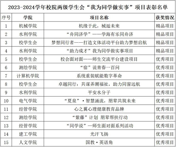 会上,唐远彤等领导为第二十三届主席团成员颁发荣誉证书,感谢他们为学校学生工作做出的积极贡献,并对2023-2024学年校院两级学生会开展的“我为同学做实事”的4个精品项目和11个优秀项目进行了表彰。