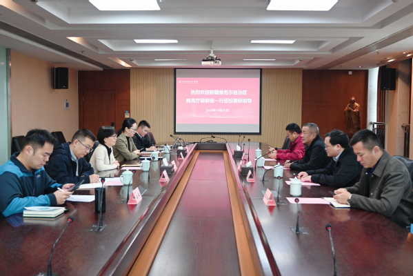 唐远彤对调研组一行表示热烈欢迎,介绍了学校在铸牢中华民族共同体意识教育方面做出的努力和取得的成就,希望新疆教育厅一如既往指导和支持学校工作,在铸牢中华民族共同体意识教育、招生就业、心理健康教育等领域进一步拓展合作与交流,携手书写两地教育合作新篇章。