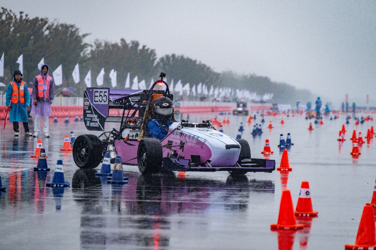 本次参赛赛车是车队队员自主设计制造的第三辆电动方程式赛车。在学校的高度重视、机械学院的积极推动下,一代代队员接力研发,不断进步,终于在今年将车检圆环圆满合上,登上动态赛场。秋雨绵绵,多变的天气为比赛带来了更大的挑战,赛场情况瞬息万变,E55在赛场上接连面对高压掉电、失去动力、悬架断裂、后舱异响、没有雨胎等等一系列致命问题,所有队员共同奋战,全力以赴,在耐久赛倒数七圈半时,电量告罄的电池箱为SPOWER赛车队本次比赛提前画上了句号。