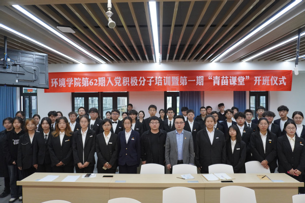 为全面学习宣传贯彻习近平新时代中国特色社会主义思想,进一步落实环境学院“绿苗成长计划”培养方案,培养符合时代要求的“水分子”。近日,环境科学与工程学院第62期入党积极分子培训暨“青苗课堂”开班典礼在南浔校区博学楼西201顺利举行。学院高度重视青年马克思主义工程建设,环境学院党总支书记汪一丁、团委书记夏添、第62期入党积极分子、“青苗课堂”第一期学员参加。